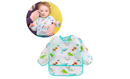 Características: Con el babero impermeable evita manchas de comida o pintura en la ropa de tu bebé. Este babero de manga larga no contiene plomo, PVC, BPA, ftalatos y vinilo. Babero de manga larga para bebé: tela delicada que cuida la piel del bebé. Bolsillo para atrapar una gran cantidad de alimentos y líquidos. El bolsillo puede almacenar algunos snacks y juguetes. Ligero y fácil de limpiar, se puede reutilizar. Polyester. De 0 a 2 años. 44 x 34.5 cm. Material: PVC.Imagen referencial: El color y/o modelo pueden variar según disponibilidad..